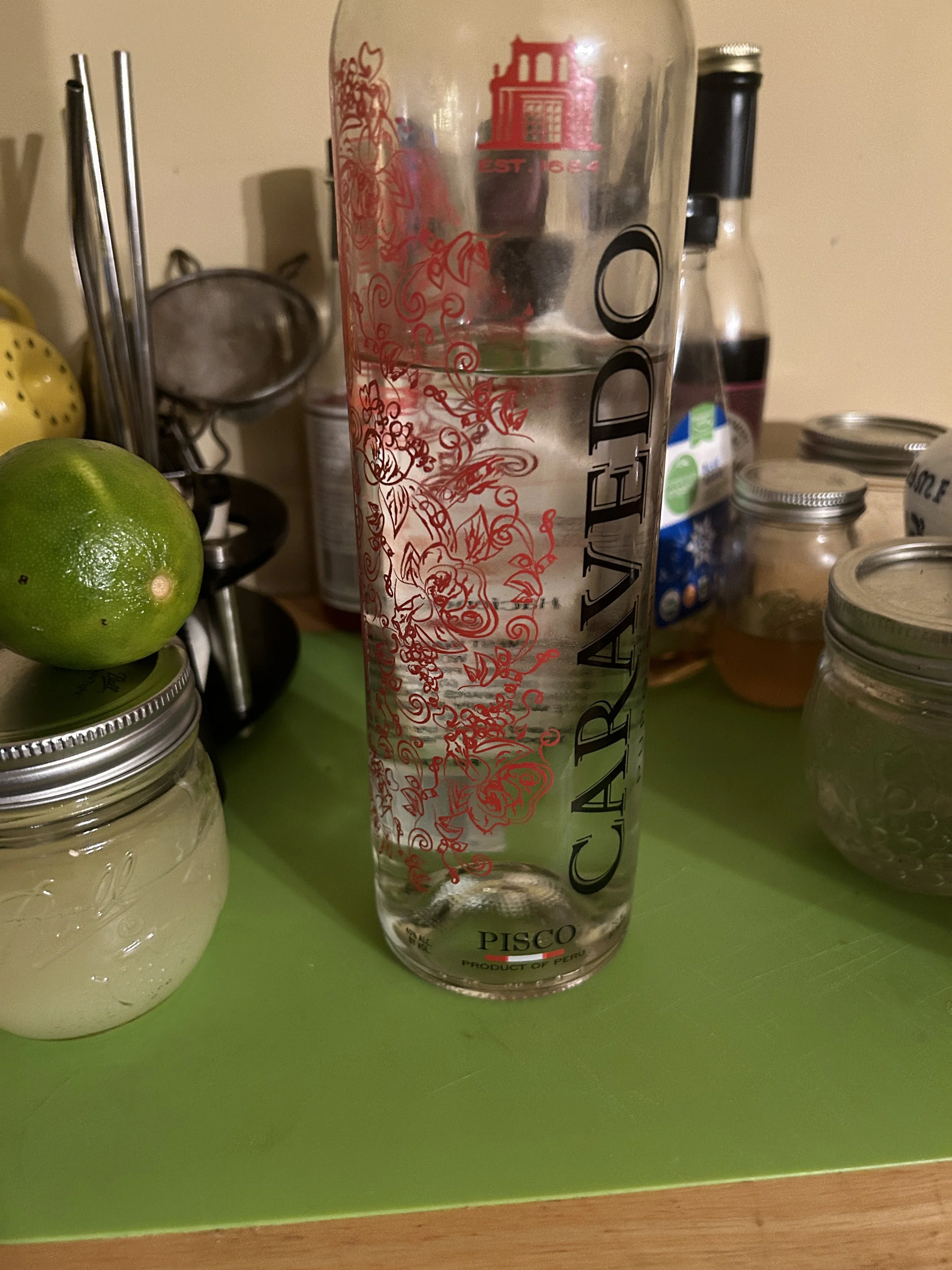 This drink is a South American spin on a classic whiskey sour that utilizes pisco, a spirit from Chile and Peru that is technically in the brandy family; big liquor stores will sell it among the brandy, but it is’s own thing entirely.
