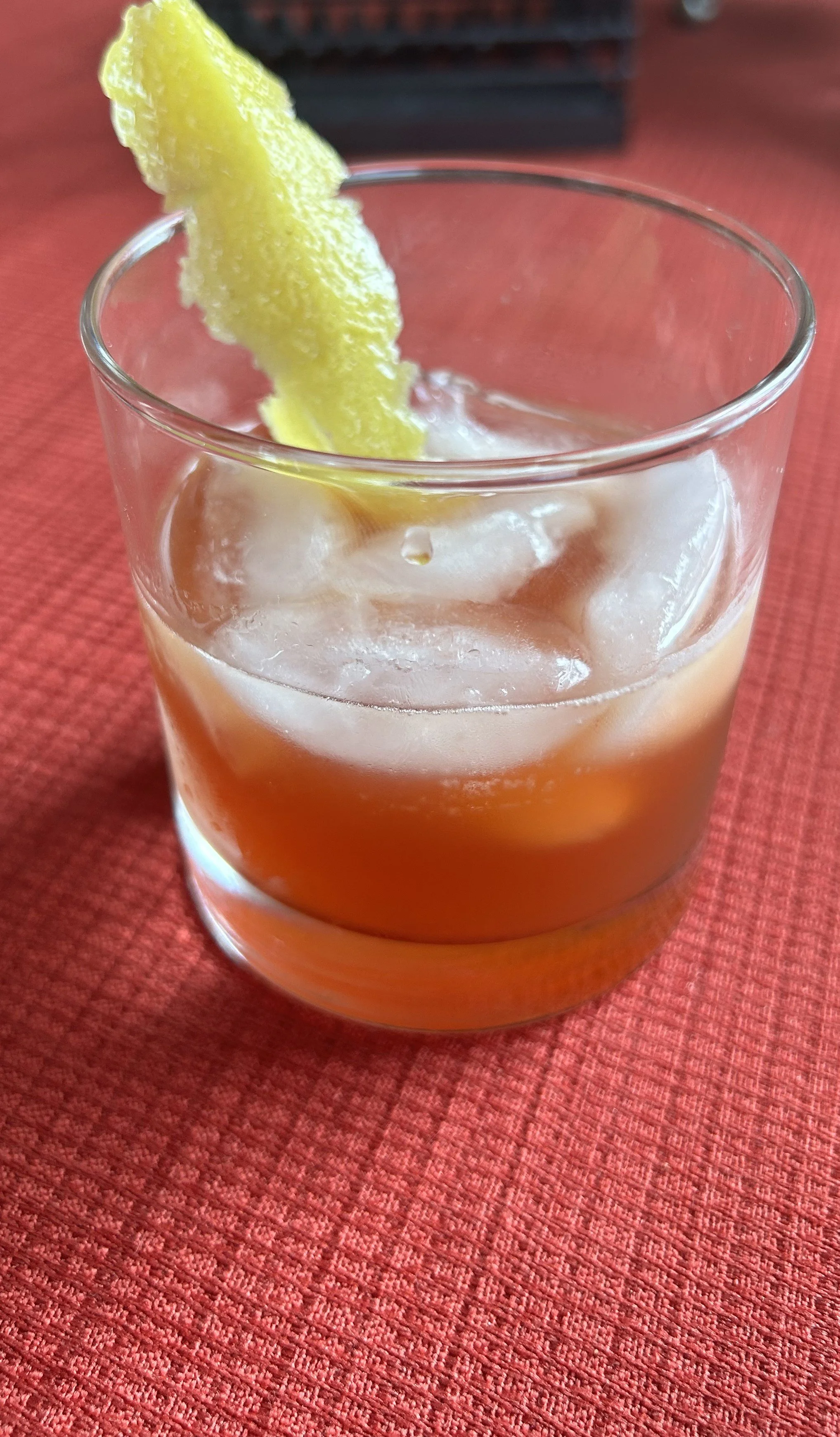 You get the spice of the bourbon, a bit of bitter-sweetness from the Aperol, a subtle smokiness from the scotch, and that citrusy lemon to lift up the whole drink!