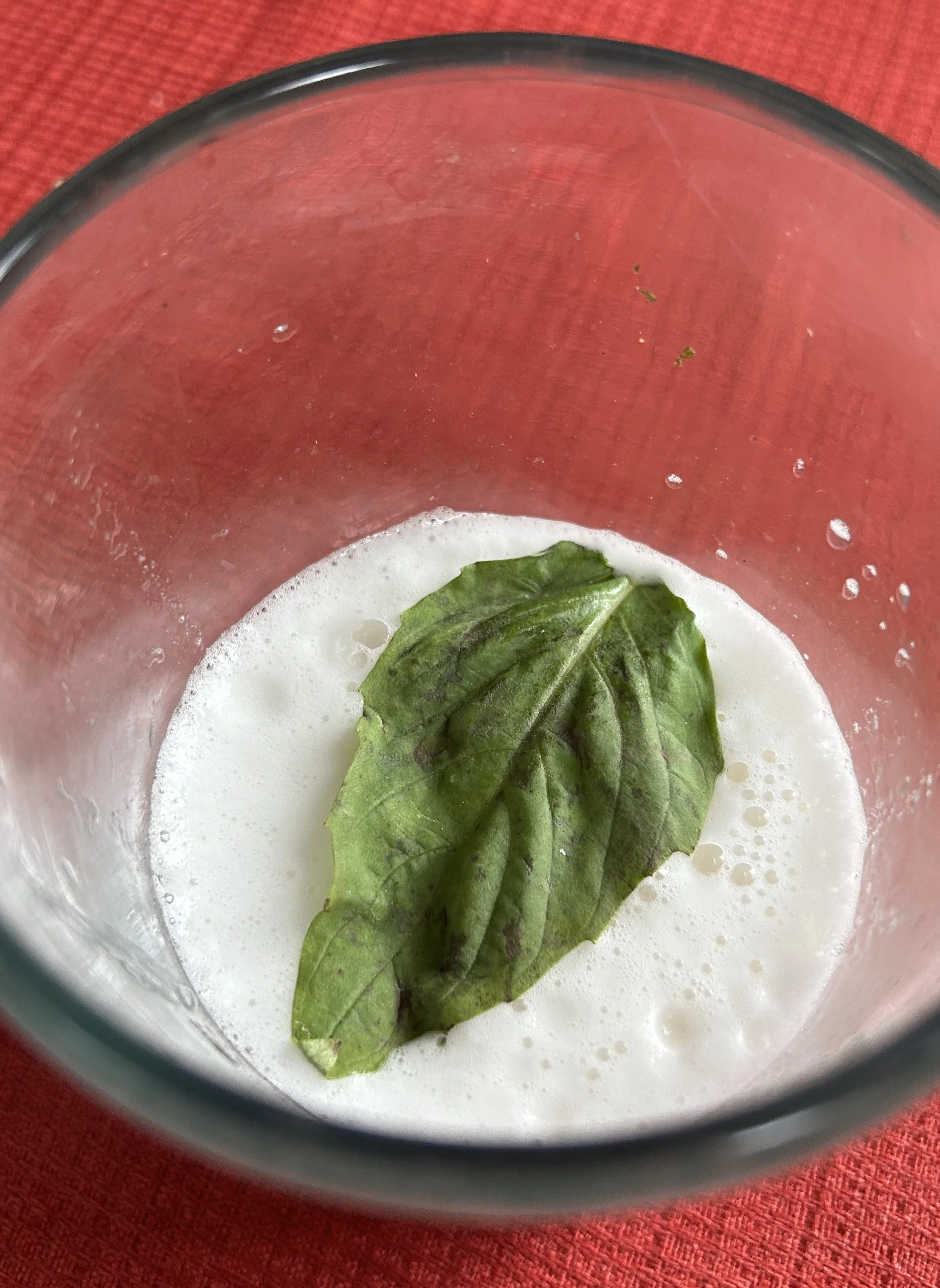 For garnish: A basil leaf and bee pollen, though you can skip the pollen if you have an allergy.