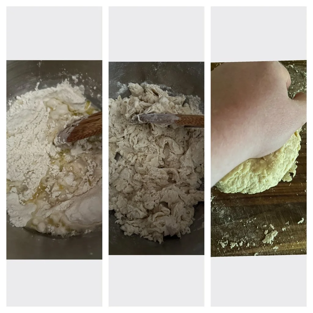 Dump the dough onto a floured surface and knead the dough for about a minute, or until the dough becomes smooth and elastic.