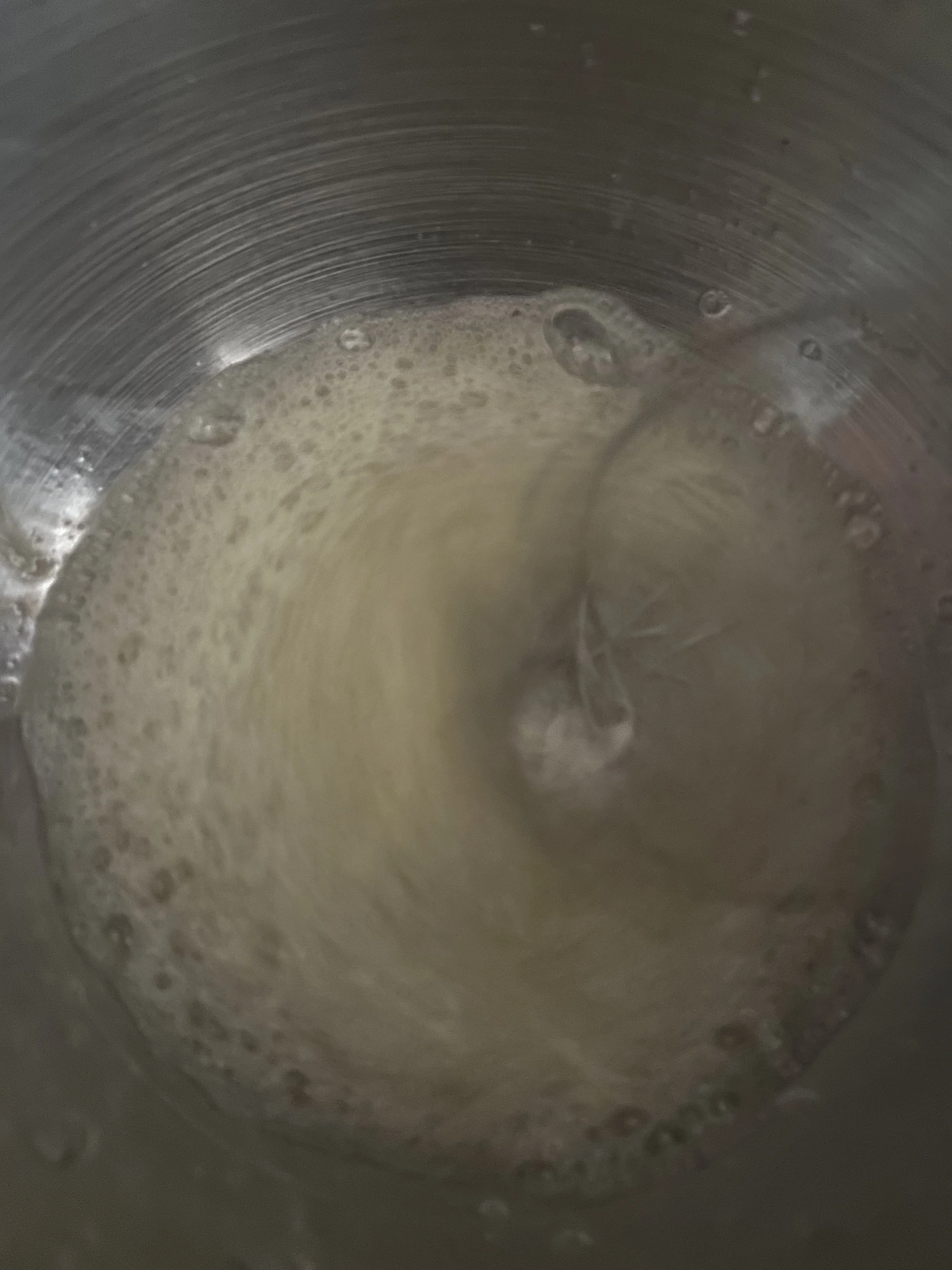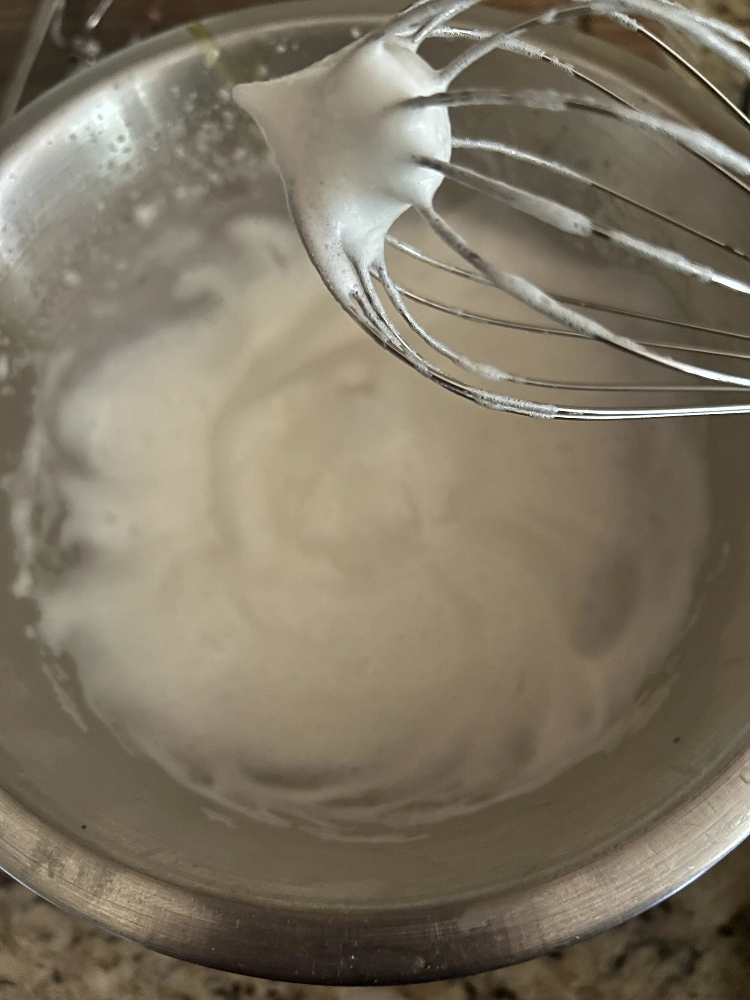 Once all of the sugar water is added, increase the mixer speed to medium-high and beat for 4-5 minutes, or until the mixture starts to thicken and cool.