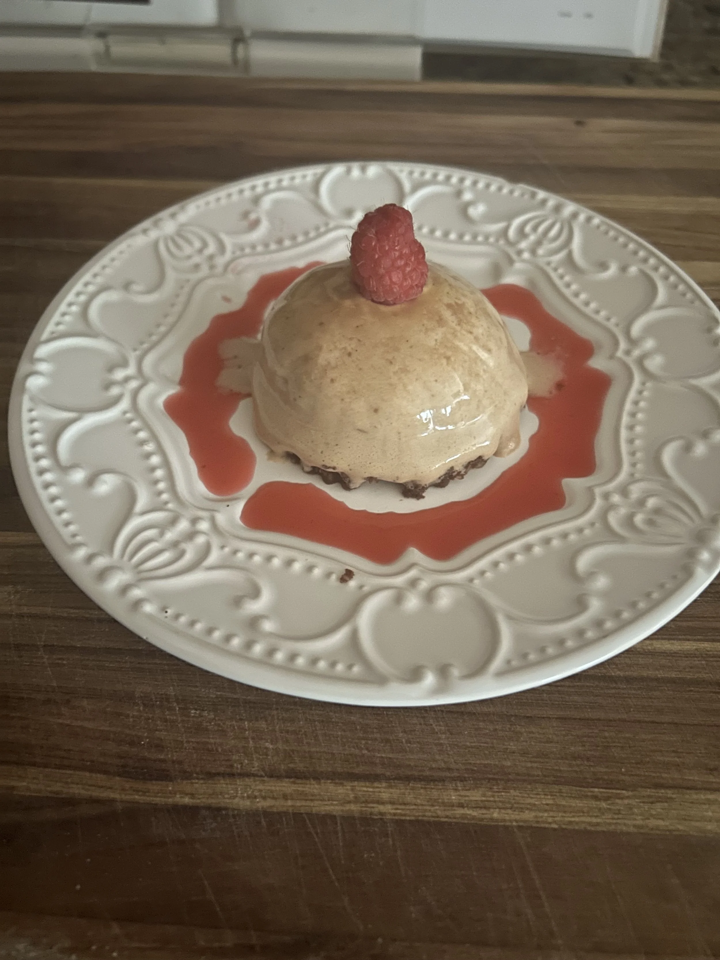 Chocolate Semifreddo with Chocolate Cake and Raspberry Coulis