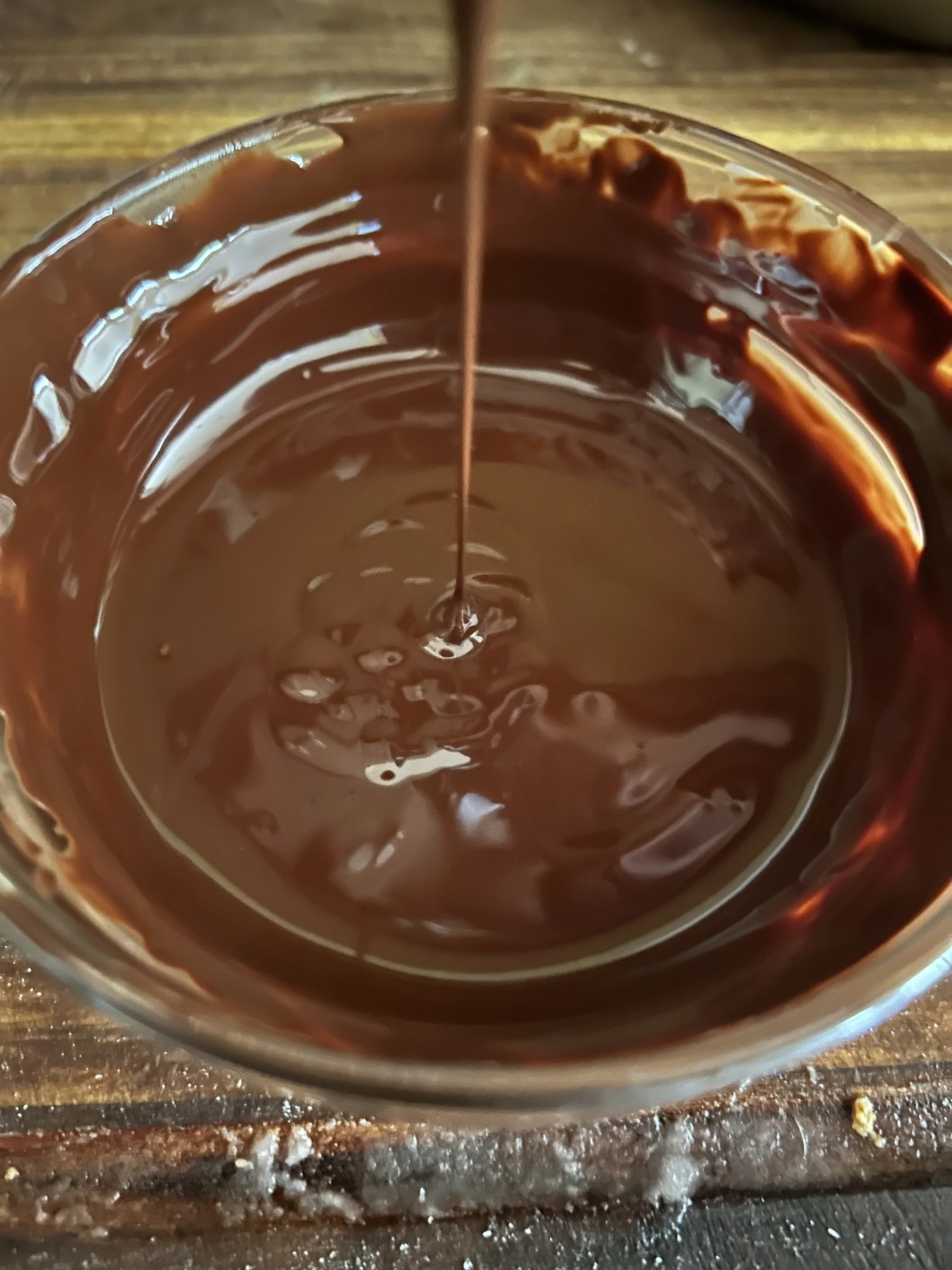 (This method for melting chocolate is not only easier than using a double boiler, but you don’t run the risk of getting a bit of water into the chocolate, which can cause the chocolate to seize and never melt, but that's just me.)