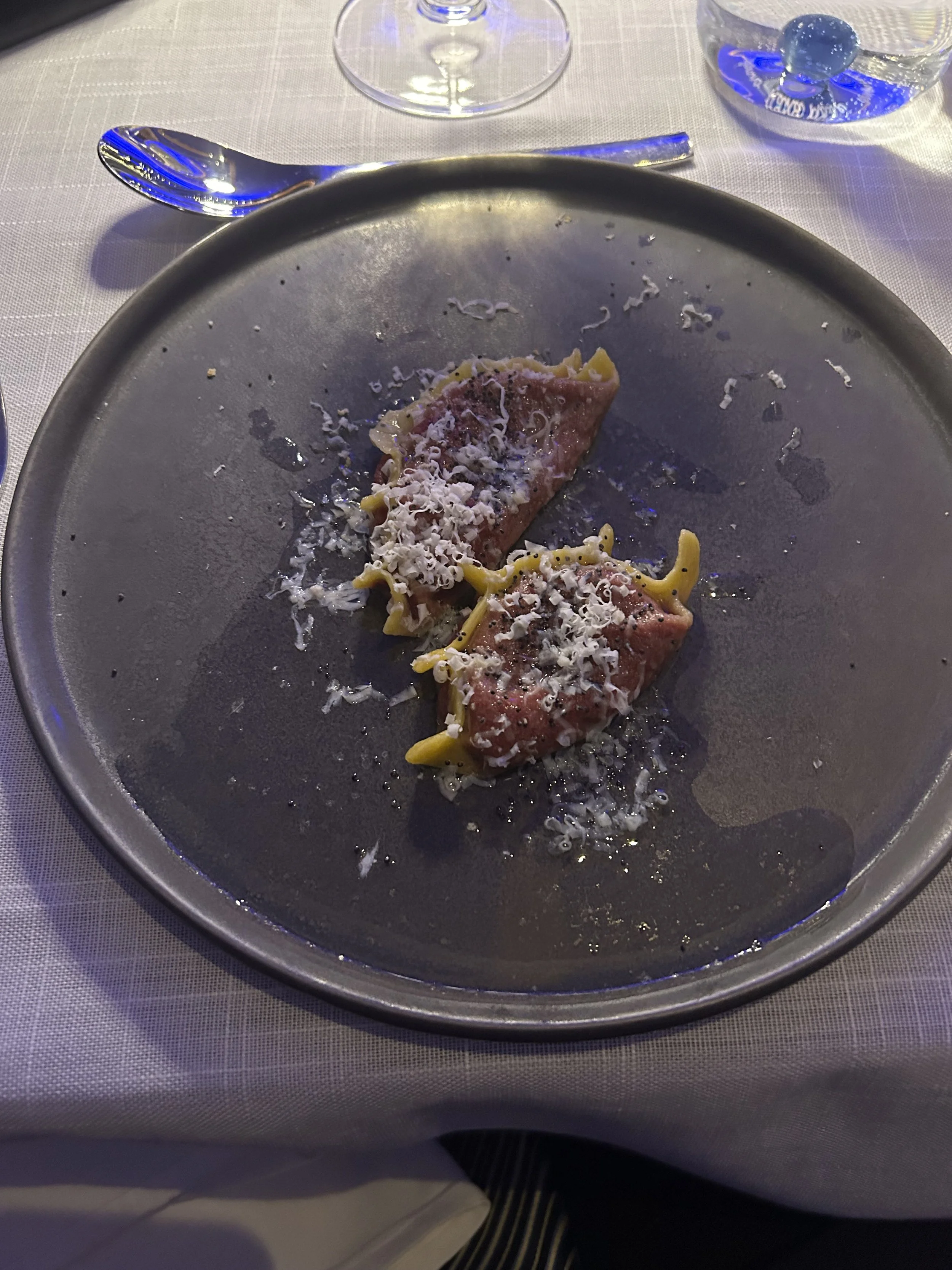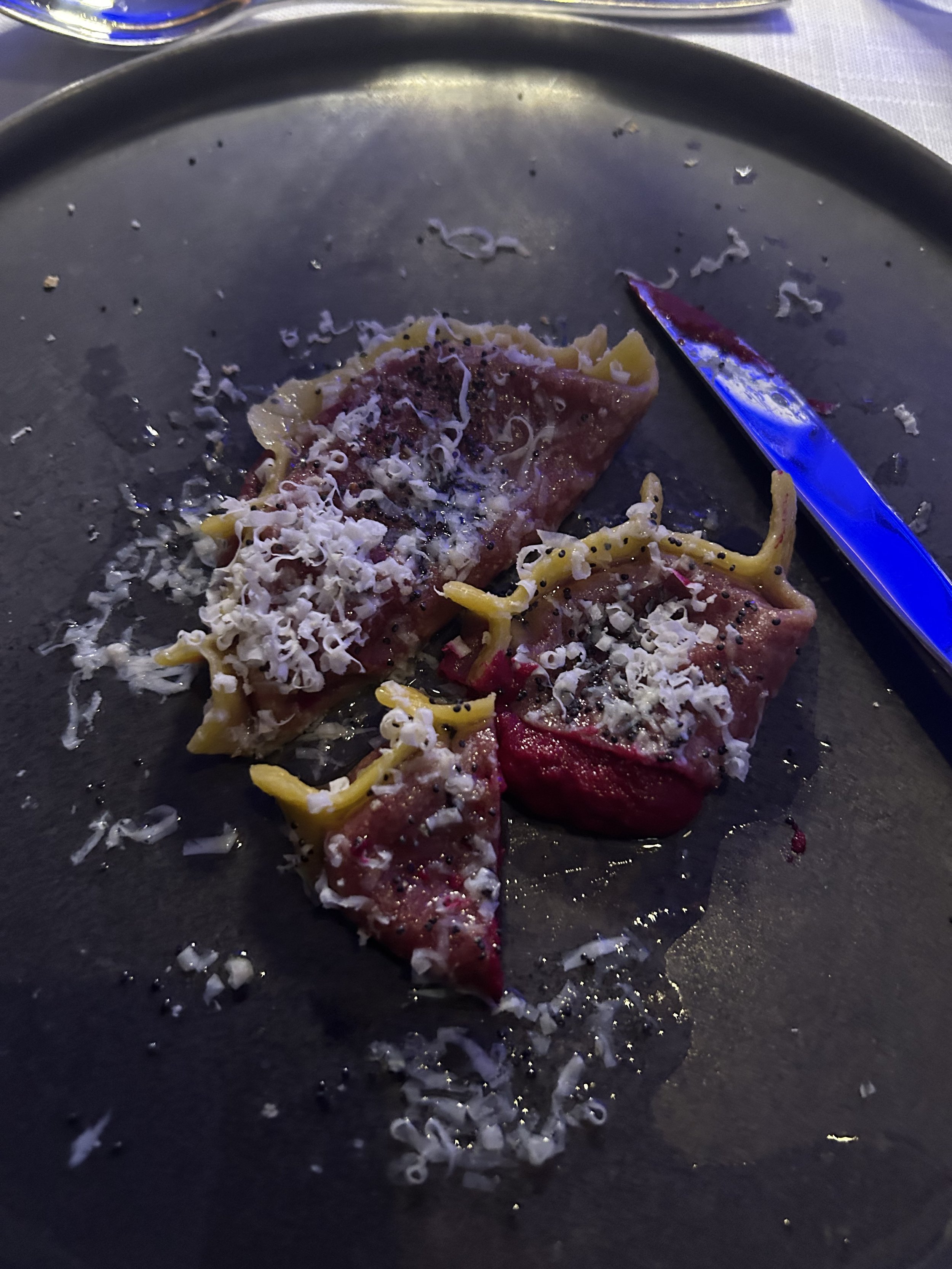The taste was out of this world. The wrapper for the cjalsons was perfectly soft and tender, the filling had a nice creamy consistency and tons of beetroot flavor, and that buffalo butter tied it together nicely.