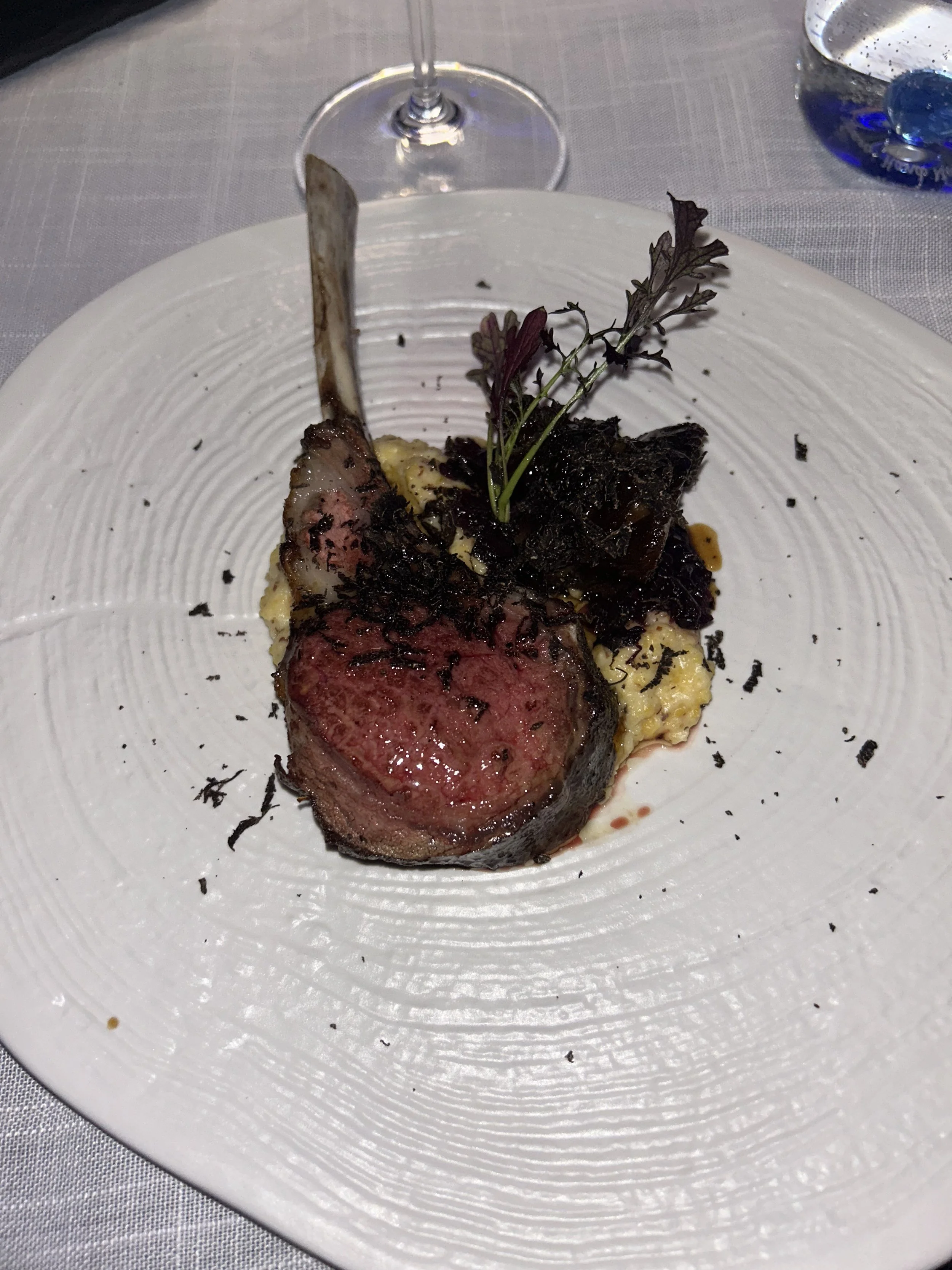 Then it was time for the main course for the evening, a roasted lamb chop with braised lamb neck, caramelized radicchio, and creamy polenta.