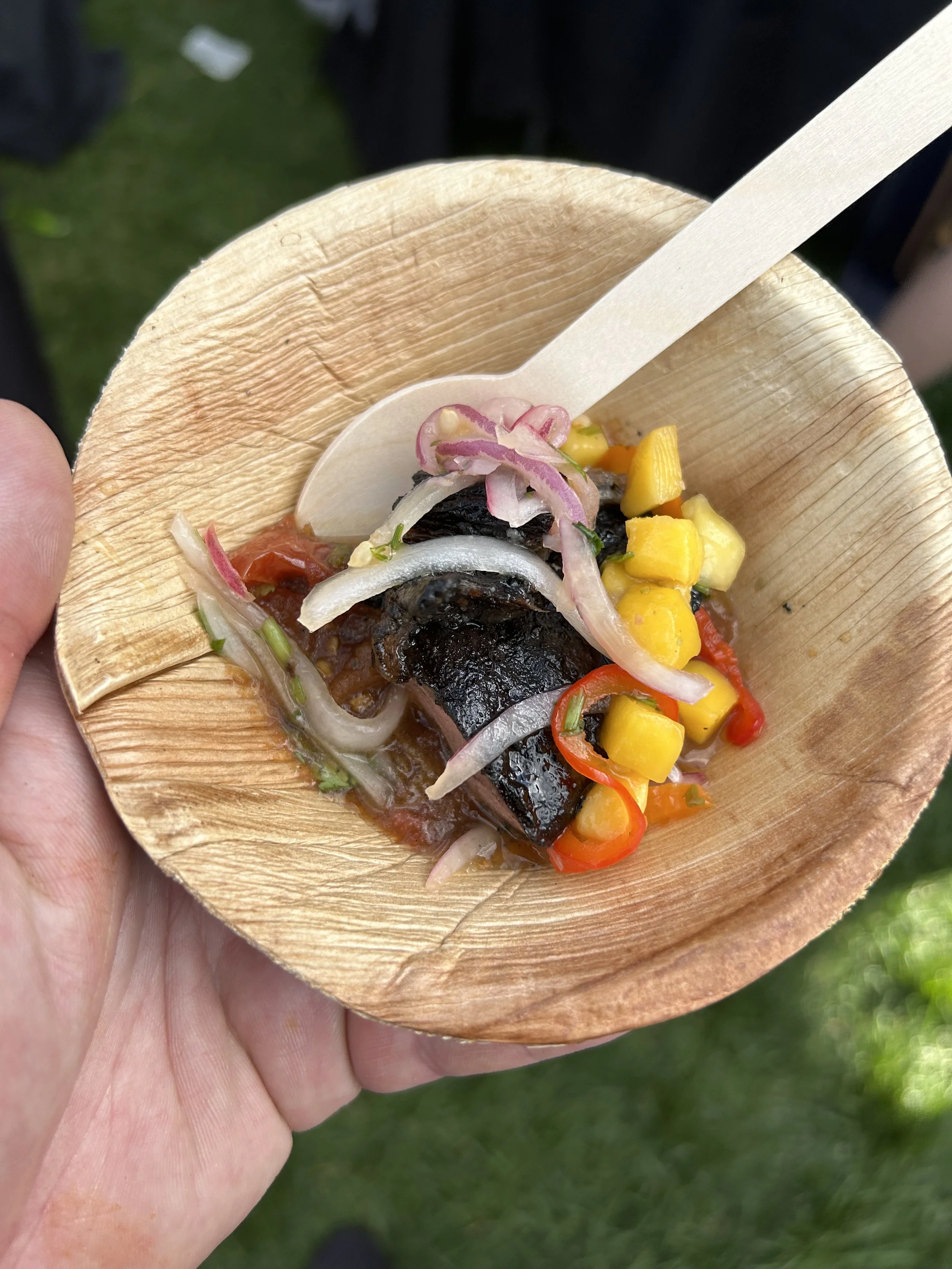 On the menu for the festival was their take on Uchepo, a type of tamale that is made with fresh corn the masa that most people are familiar with for tamales, there’s happened to be topped with slow braised beef cheeks, lemon cream, and Argentinian tomato salsa called Salsa Criolla.