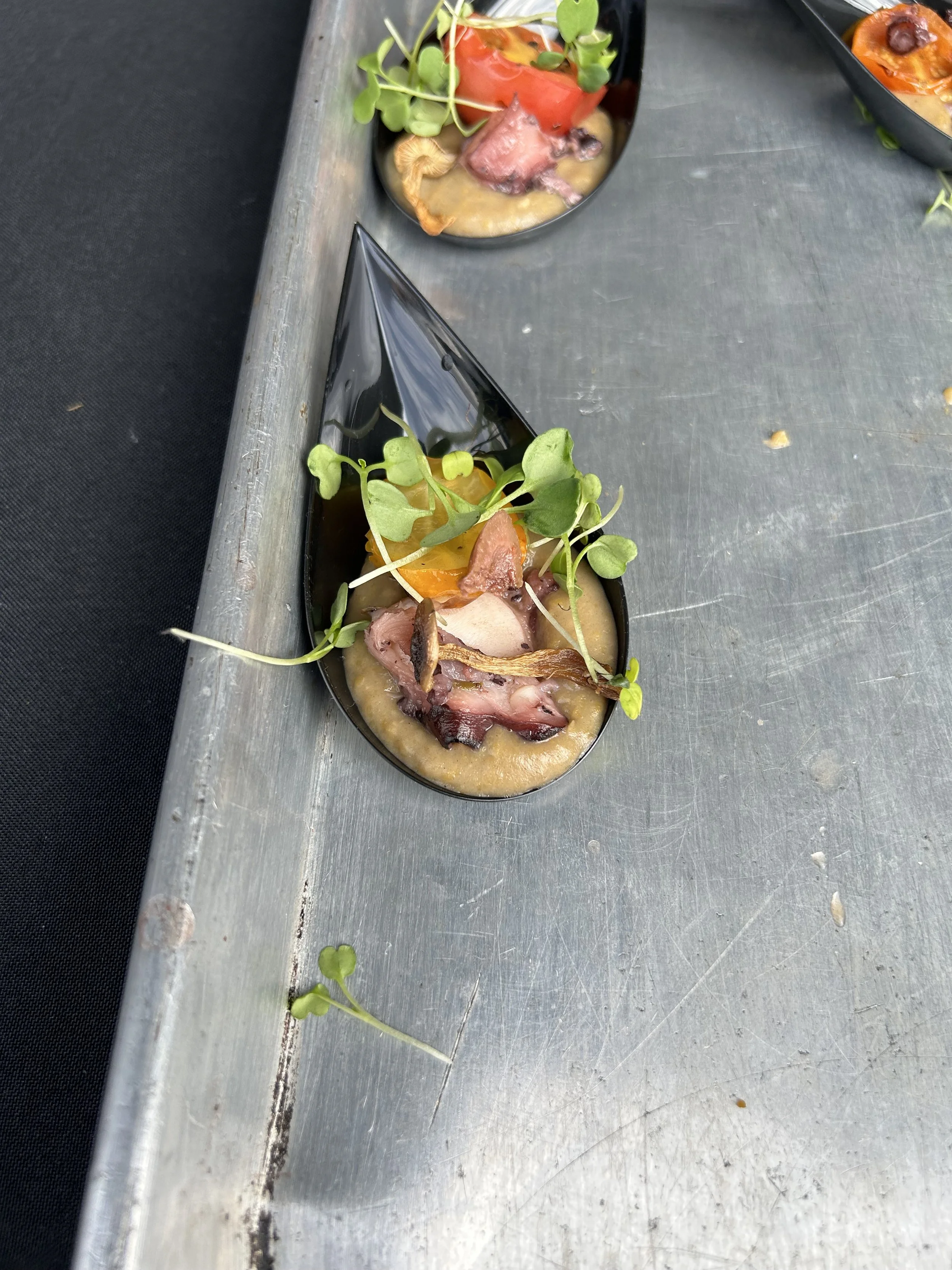 Octopus is one of those proteins that people are either grossed out by or are open enough to try, and fortunately, the bite that Air Culinaire provided was exquisite! The soft polenta laced with the earthy wild mushrooms was heavenly with that bit of smoked octopus. It was lovely.