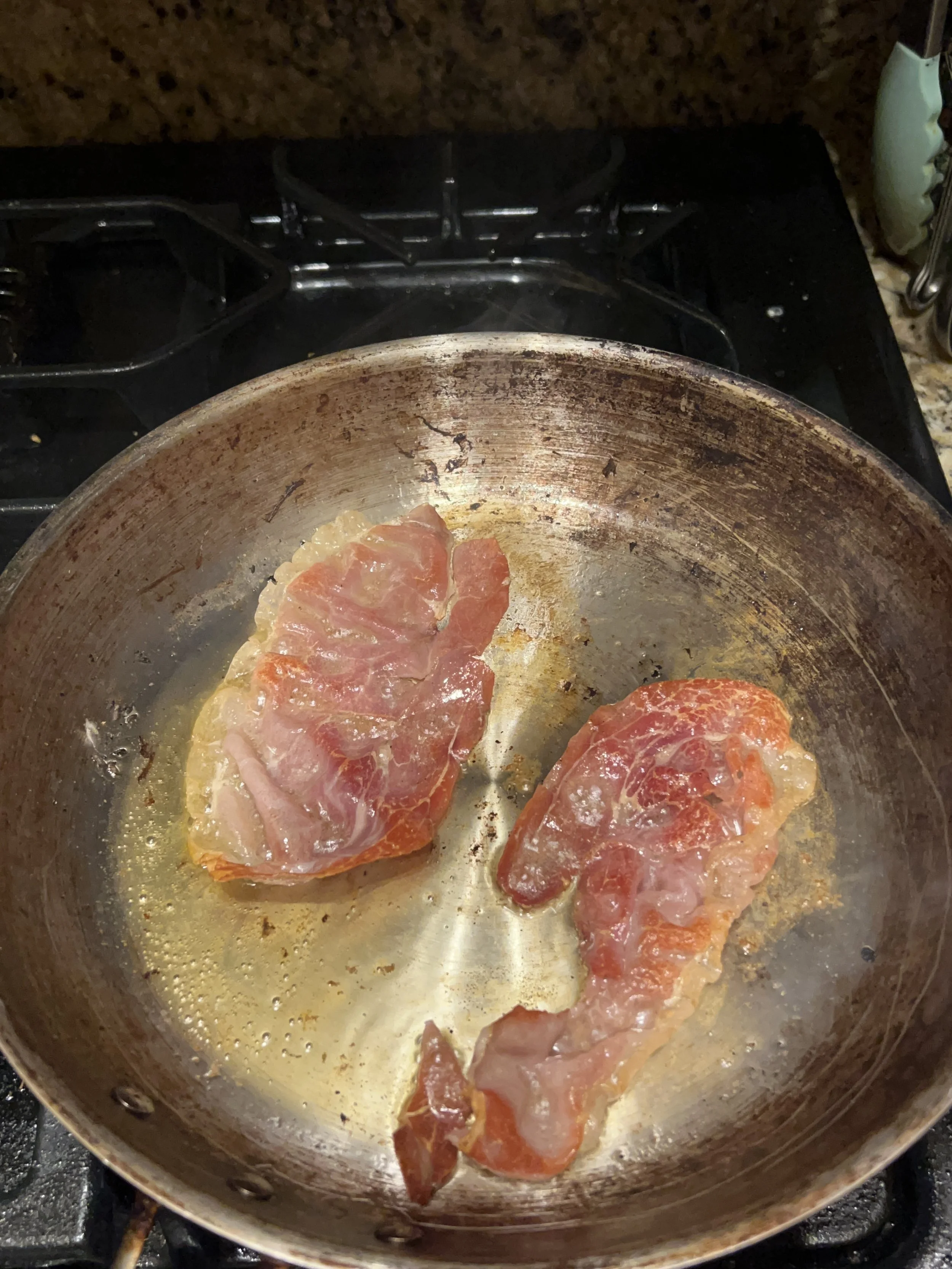 Once all of the prosciutto slices are browned, heat the same pan over medium-high heat with another thin layer of oil, then lay in the chicken and cook until golden brown on both sides, 4-5 minutes per side.