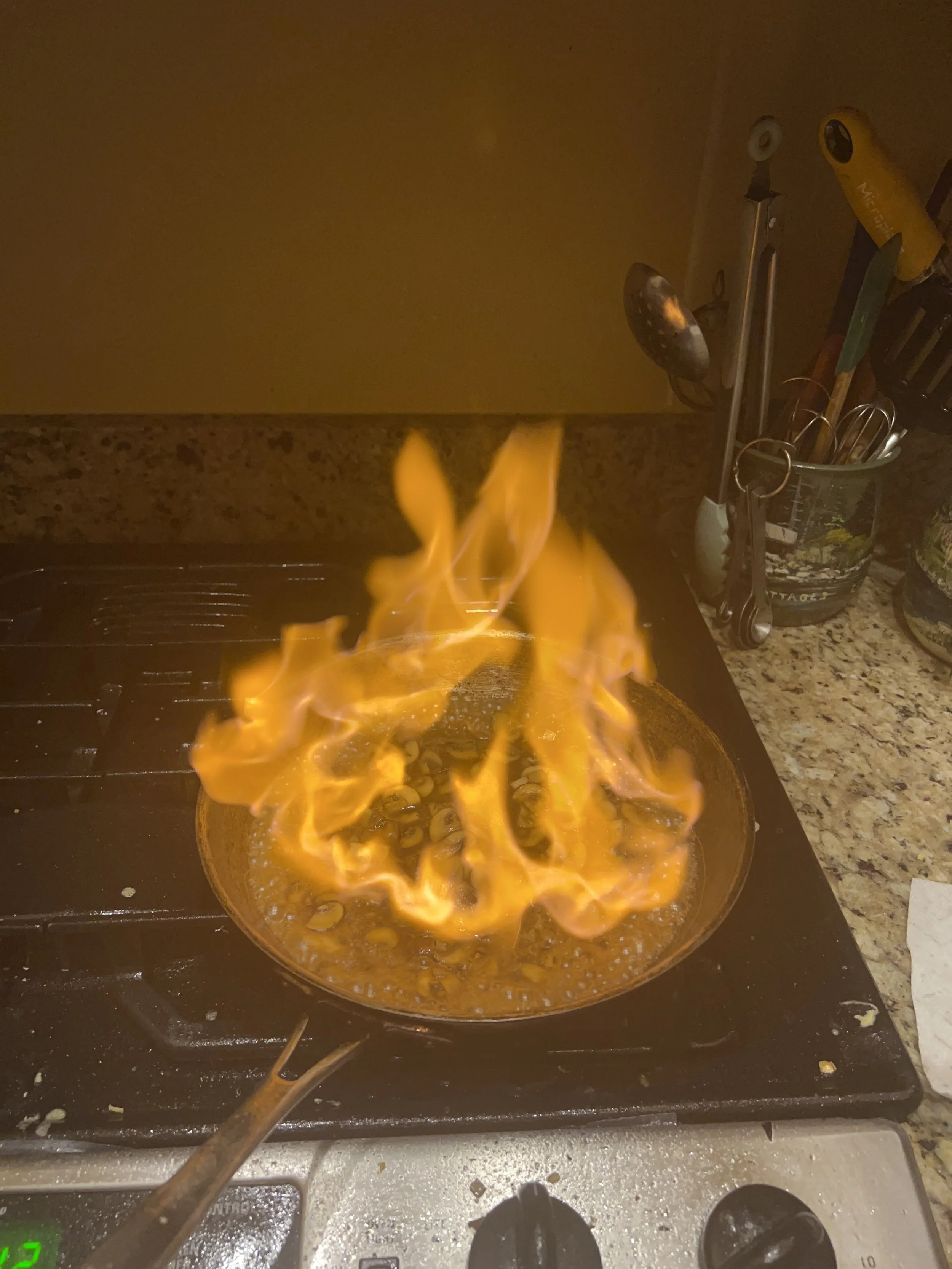 Make sure there is nothing flammable near your stove before you Flambe