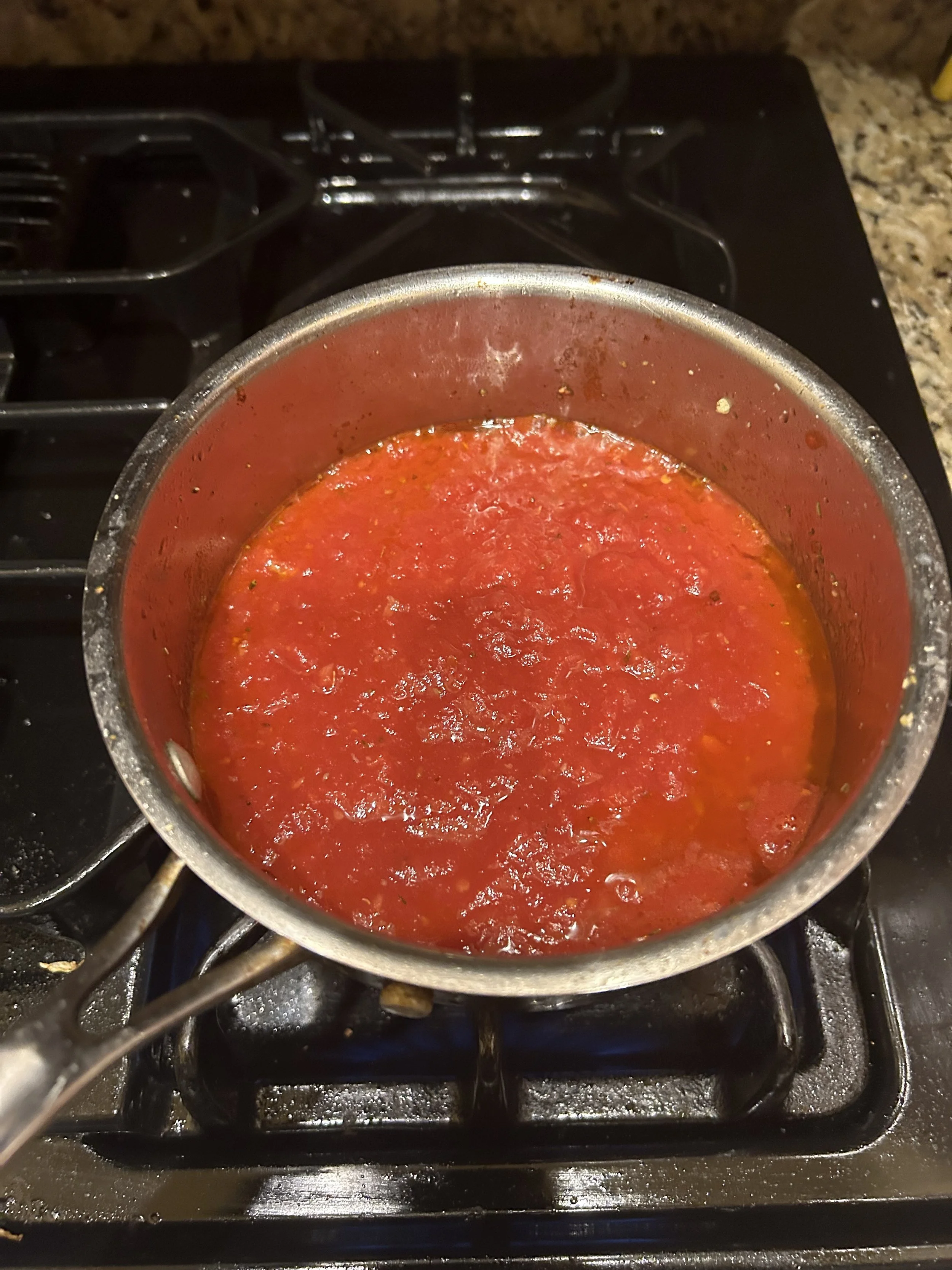 To get things started, I will first make a quick tomato sauce. Store-bought sauces are fine, but making the sauce yourself does show extra love and care.