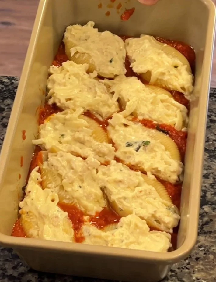 Delicious pasta shells stuffed with a mixture of ground chicken and ricotta cheese then baked in tomato sauce. It doesn’t get any better than this.