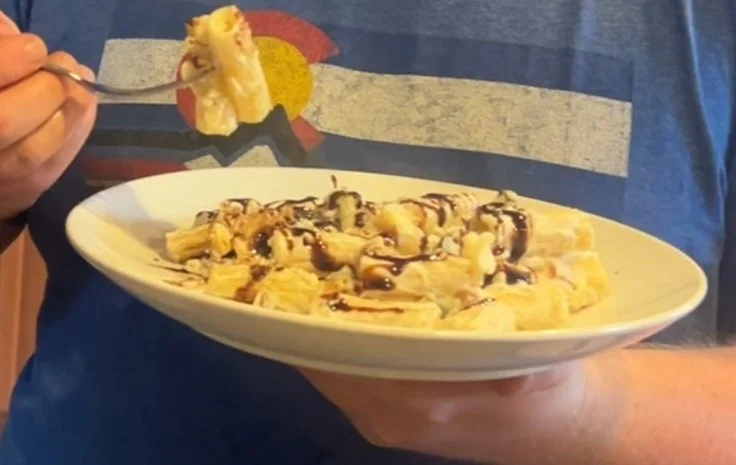 This dish combines two of my favorite potato dishes in a delicious way. Tender, fluffy gnocchi topped with cheese, sour cream, bacon, and even it's own crispy skin.