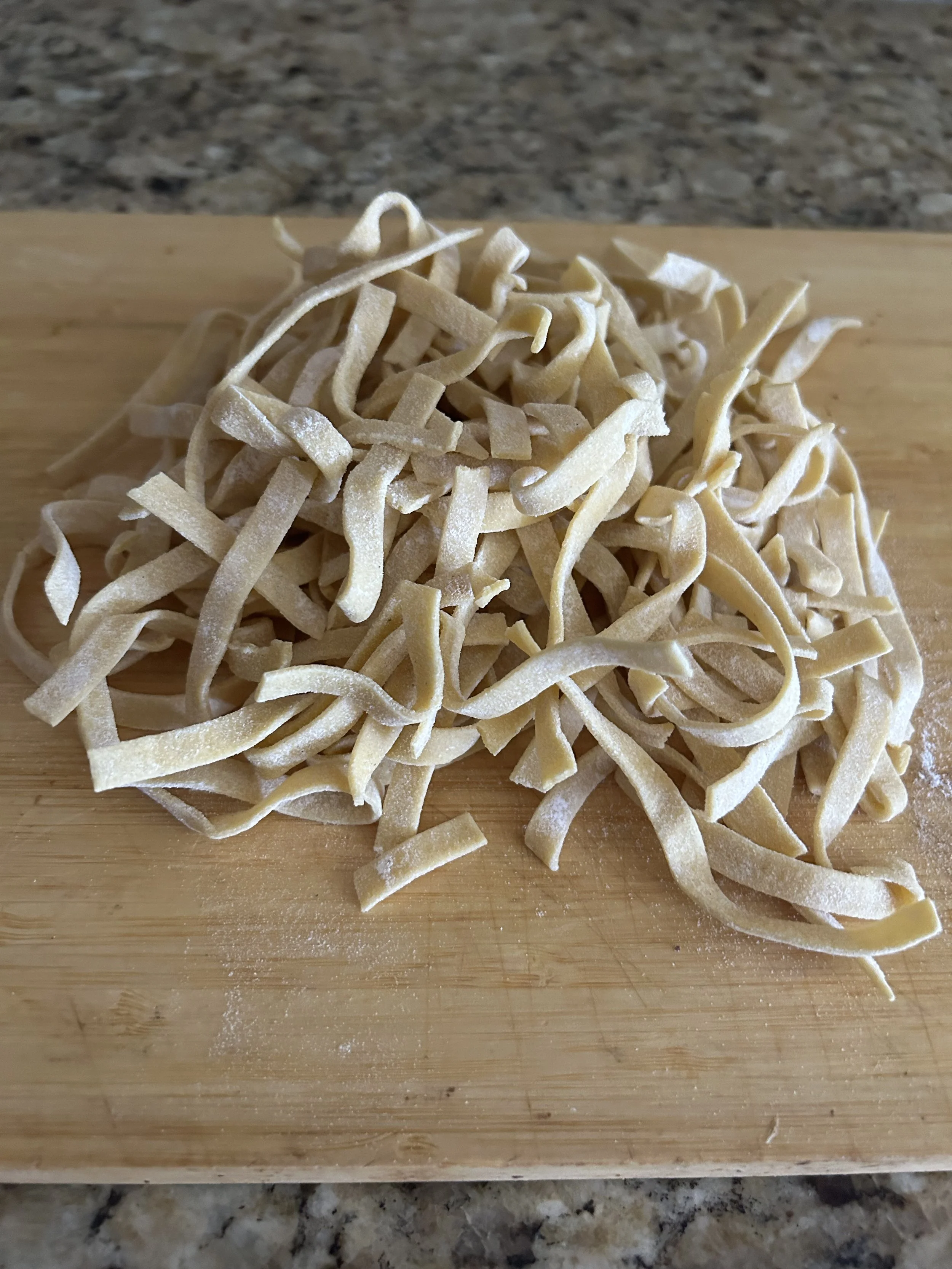Today, I’ll be using some fresh fettuccine pasta that I made previously and left to dry overnight so it has as many uses as dry pasta, but when cooked it has the signature texture that only fresh pasta can provide.