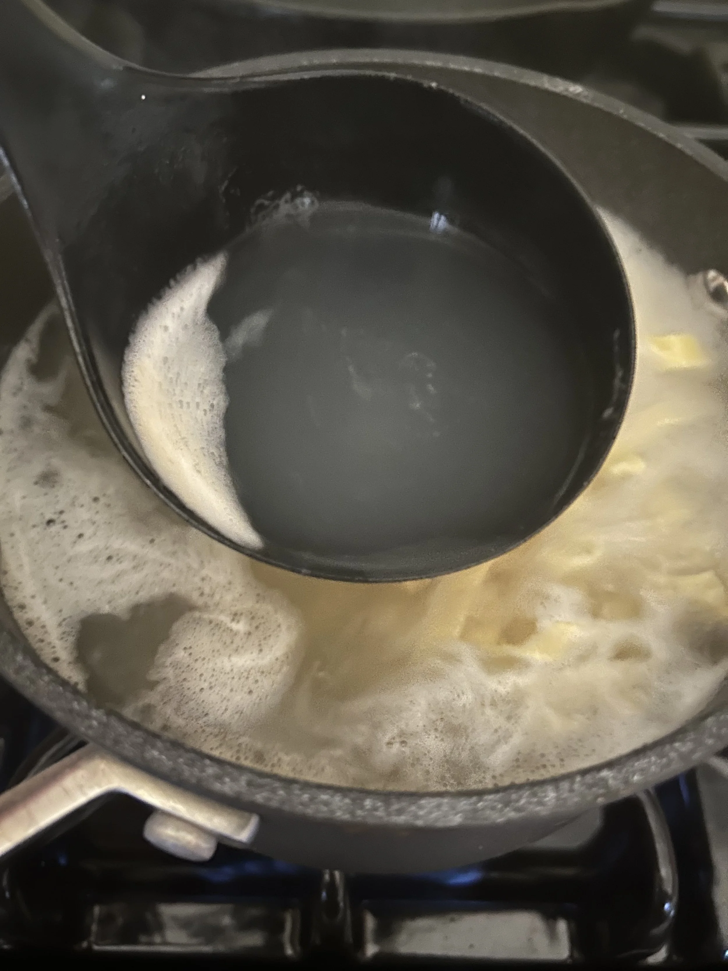 That’s right, we have nothing to bind these three ingredients together and help form a beautiful sauce for the pasta, for that we look to an Italian chef’s best friend, pasta cooking water.