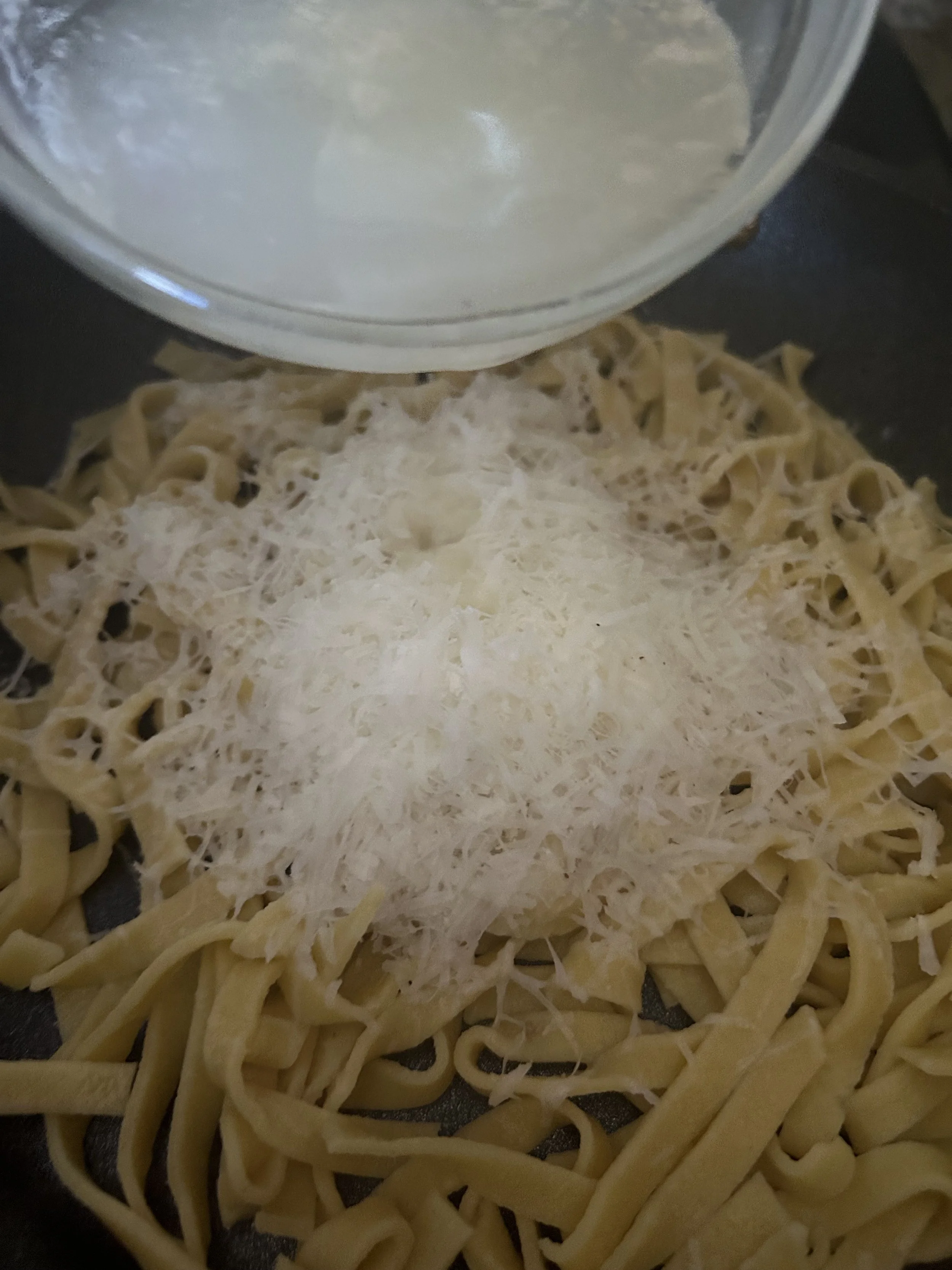In the case of Cacio e Pepe, the pasta water quickly melts down the grated pecorino and helps it and the pepper grab onto the pasta, so when you sit down to eat it the cheese will be hugging the pasta like a thin blanket, so you get it’s flavor with every bite.