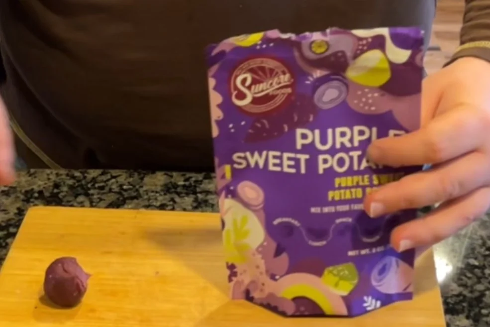 Purple-While purple isn't that rare in food, figuring out a natural way to dye pasta purple seemed like a tall order to me, that was until I stumbled upon purple sweet potato powder, which seemed to do the trick!