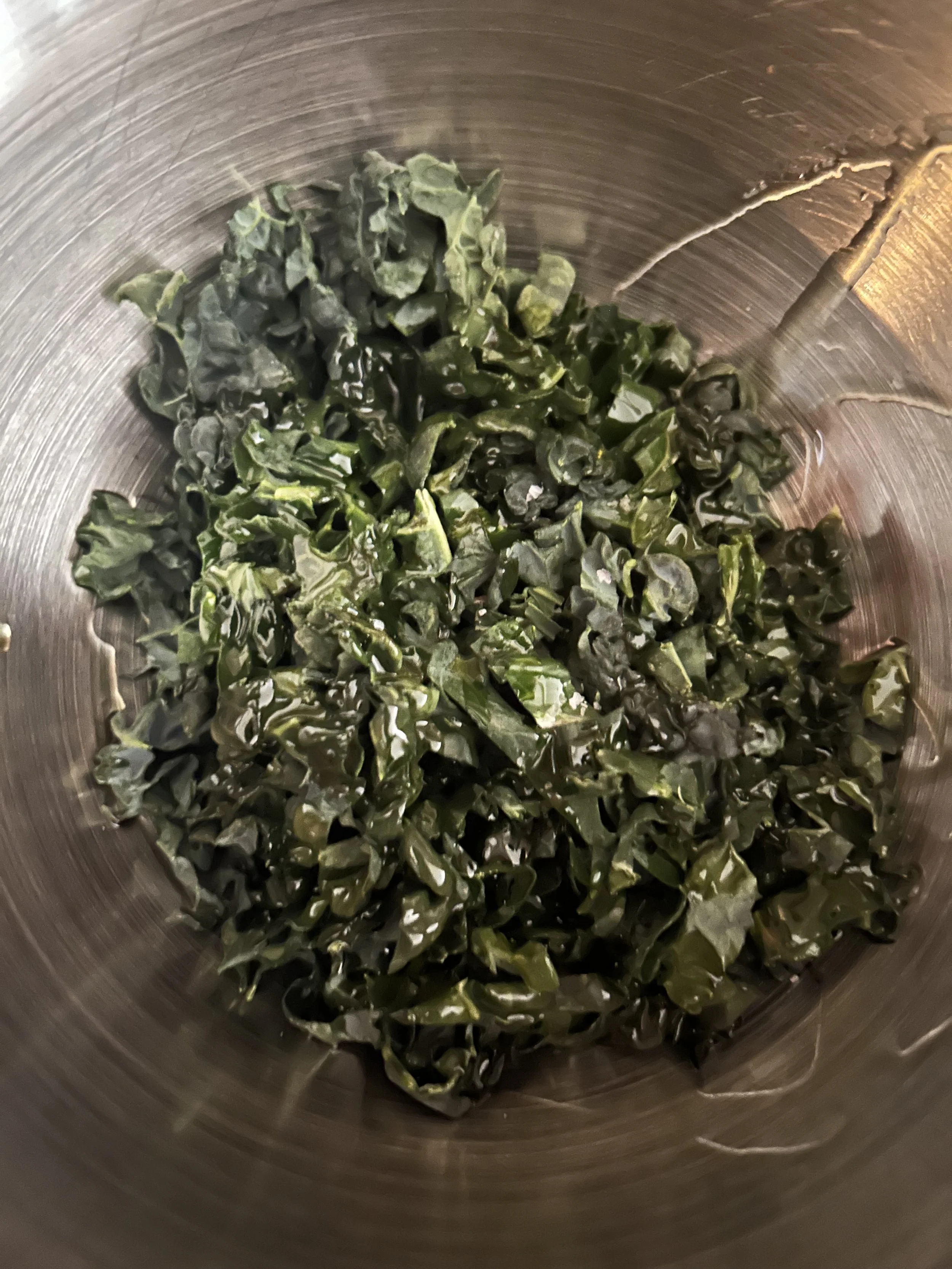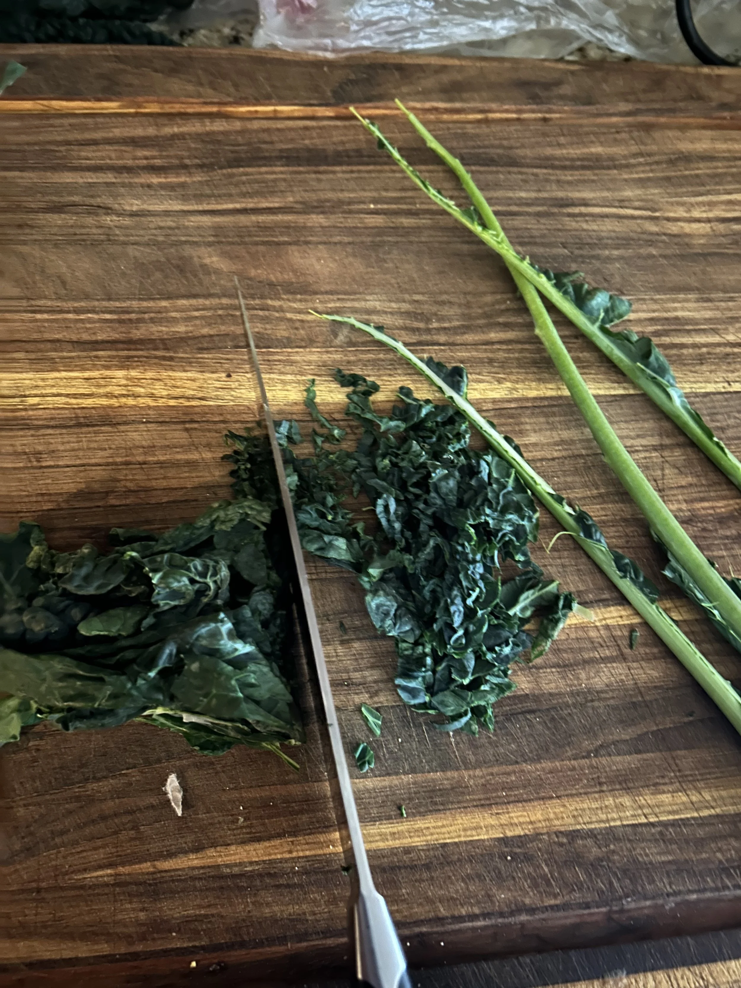 2 bunches of Tuscan kale, stems removed and leaves thinly sliced.