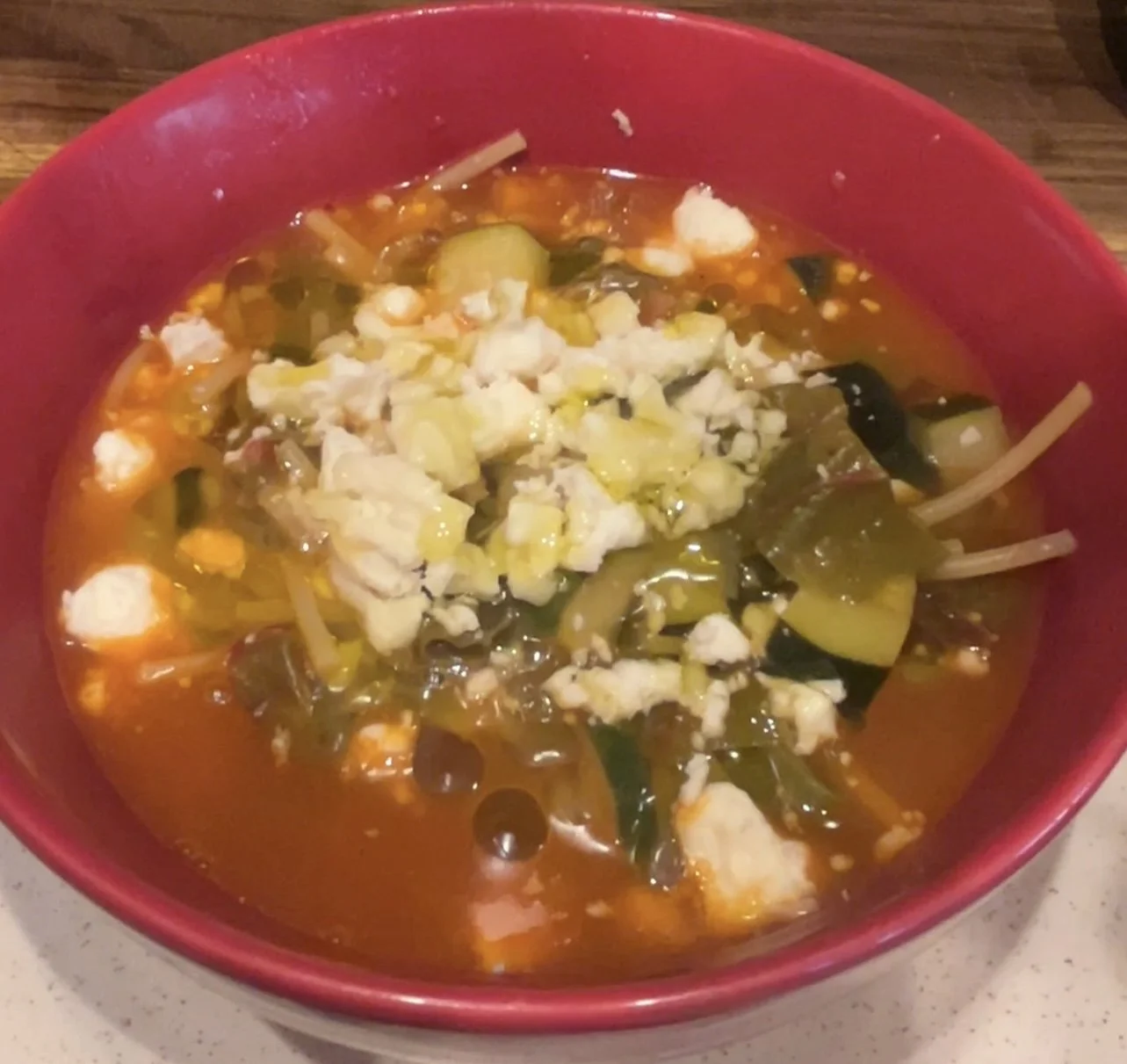 This particular soup, which features pasta, greens, tomatoes, and zucchini comes from a single woman named Maria, who you might be familiar with if you follow the Pasta Grannies on YouTube, is a perfect soup to make to highlight the bounty of summer produce in their most natural state.