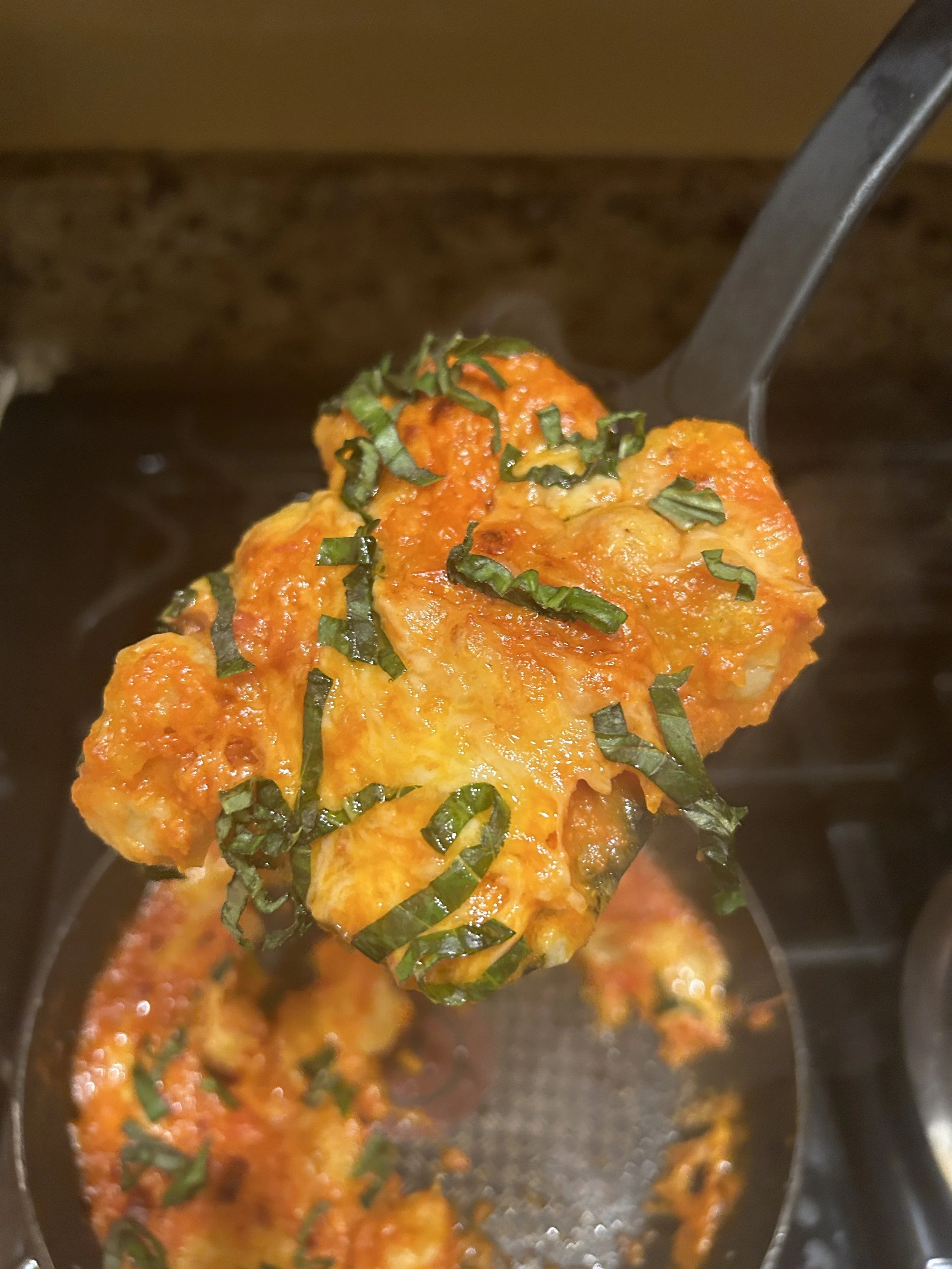 Now, if this dish doesn’t convince you to become vegetarian for one night, then I honestly don’t know what will. The dumplings themselves are full of cheesy goodness with a hint of nuttiness from the nutmeg. You get a nice balance of sweetness and acidity from the sauce, and that baked cheese on top takes this dish to a whole new dimension.