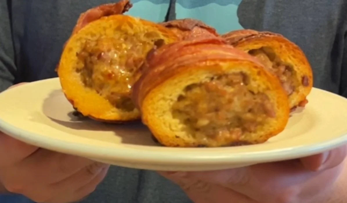 There is nothing to these rolls, really, you just cut up a baguette into pieces, hollow out the middle, stuff it with sausage, wrap it in bacon, and bake that. The result: I pocket of salty, savory goodness that will be a big hit at your next party or get together. They’re essentially an Italian version of pigs in a blanket.