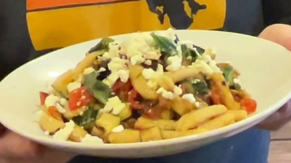 Trofie are these little corkscrew-shaped pasta that take a bit of precision to master the shape, but are quite fun to make and have no eggs whatsoever.