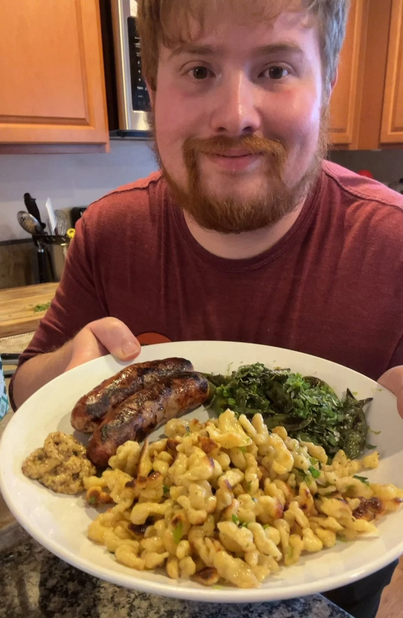 Spaetzle are very easy to make and are a perfect thing to serve alongside a roast, with sausages, with schnitzel, or to serve under saucy dishes like beef stroganoff to offer a starchy vessel to pick up said sauce.